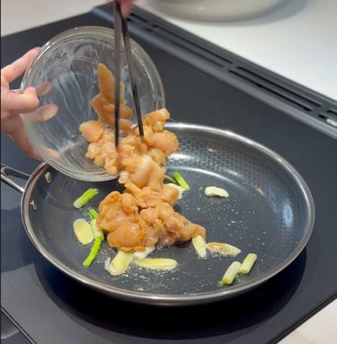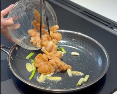 Add 2 tbsp of oil to heated pan, cook ginger and garlic until fragrant.