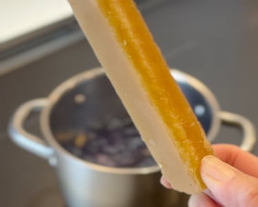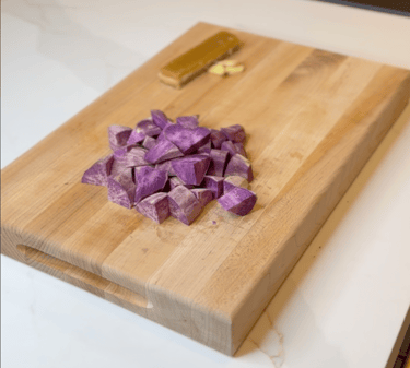 1. Prep: Cut ginger into slices. Peel the ube and cut into bite size pieces.