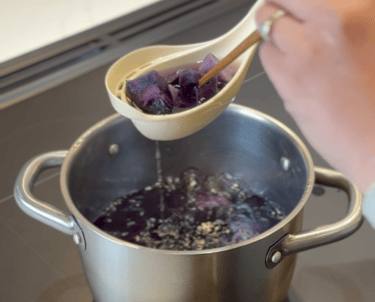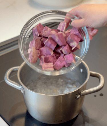 2. Add ginger and ube to boiling water. Cook for 5 minutes in medium heat.